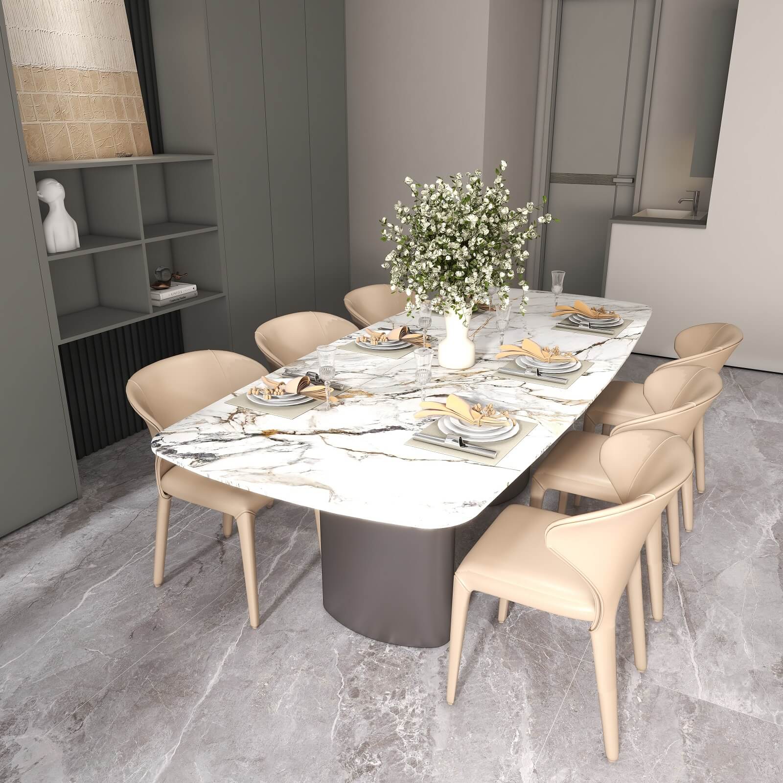全面開放式格局,讓客餐廳之間相互聯(lián)動,毫無阻隔,在提升體驗(yàn)感的同時,也增強(qiáng)了整體采光和通風(fēng)。